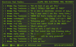 Az első e-mail üzenetet 1971-ben küldte Ray Tomlinson önmagának, azaz két olyan gép között hozott létre kapcsolatot, amelyek egymás mellett voltak. Erre az internet elődjének számító ARPANET rendszert használta. Mivel, első ízben, különböző gépek között volt kommunikáció, megszületett az @ jel, ami angolul at (- nál, -nél)