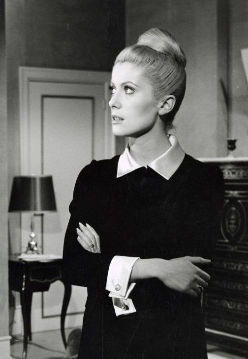 A színésznő és Yves Saint Laurent barátsága A nap szépe forgatásán kezdődött, amikor Saint Laurent öltöztette. Nagy siker lett ez a fűző és cicomák nélküli mozi. Mindenki olyan piros két részes vagy fekete vinil esőkabátot akart, mint ami Deneuve-nek kihangsúlyozta a vállát Bunuel művében. Ennek a filmnek köszönhető, hogy örök divattá vált az iskoláslány stílus, a fehér piké hajtókás, fekete ruha. 1969-ben Francois Truffaut filmjében, a Mississippi szirénjében is Saint Laurent ruhákat visel. Soha nem volt múzsa, de ő lett a divattervező párizsi Bal parton megnyitott legelső Rive Gauche butikjának keresztanyja, az Yves Saint Laurent márka arca. Minden bemutatón ott volt, barátságuk a tervező haláláig tartott.